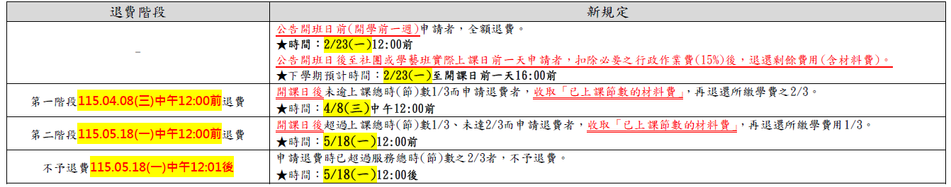 若有退費需求,請注意退費時程及規範,謝謝!