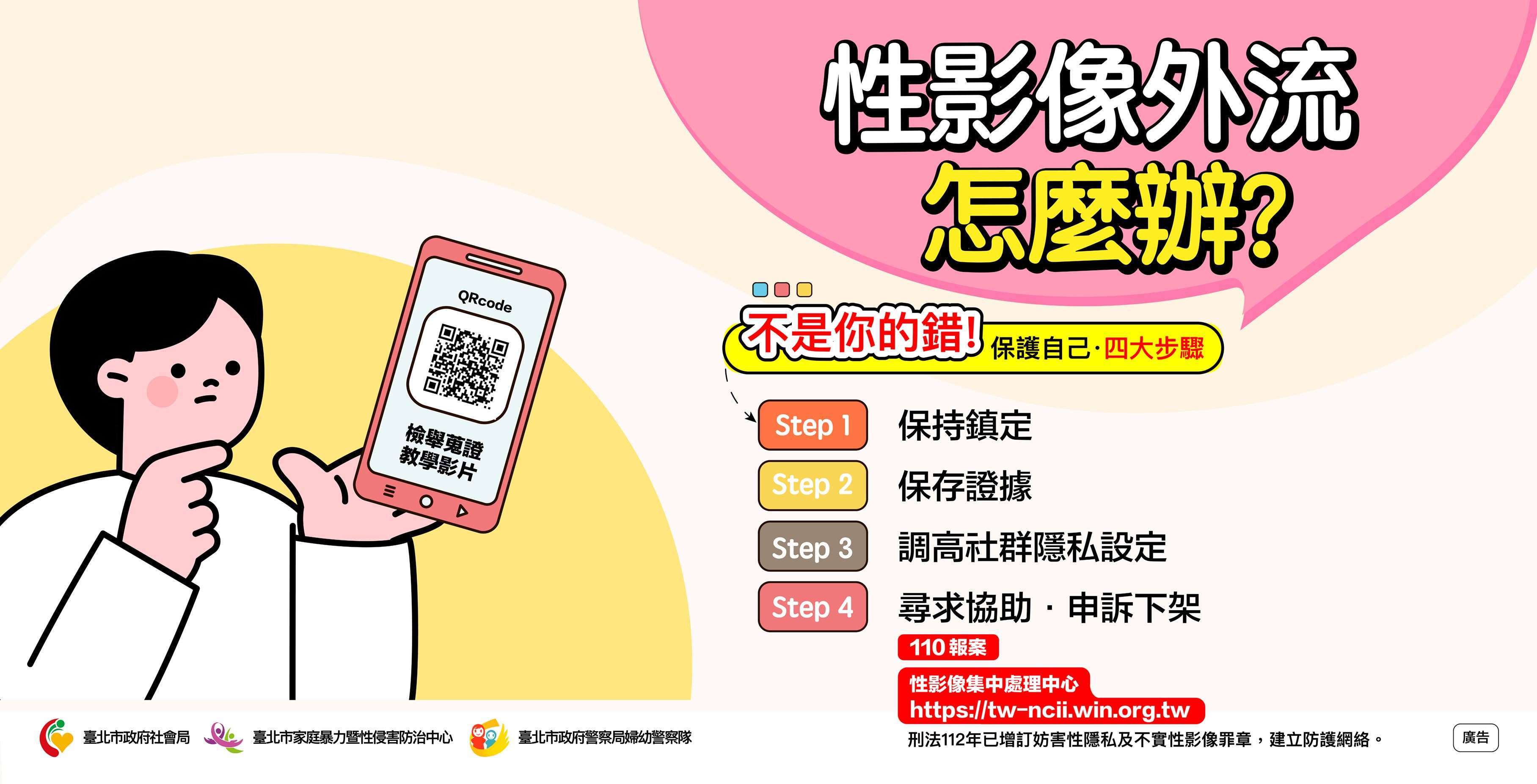 1、「防制性影像外流」與「性影像外流怎麼辦?」文宣。