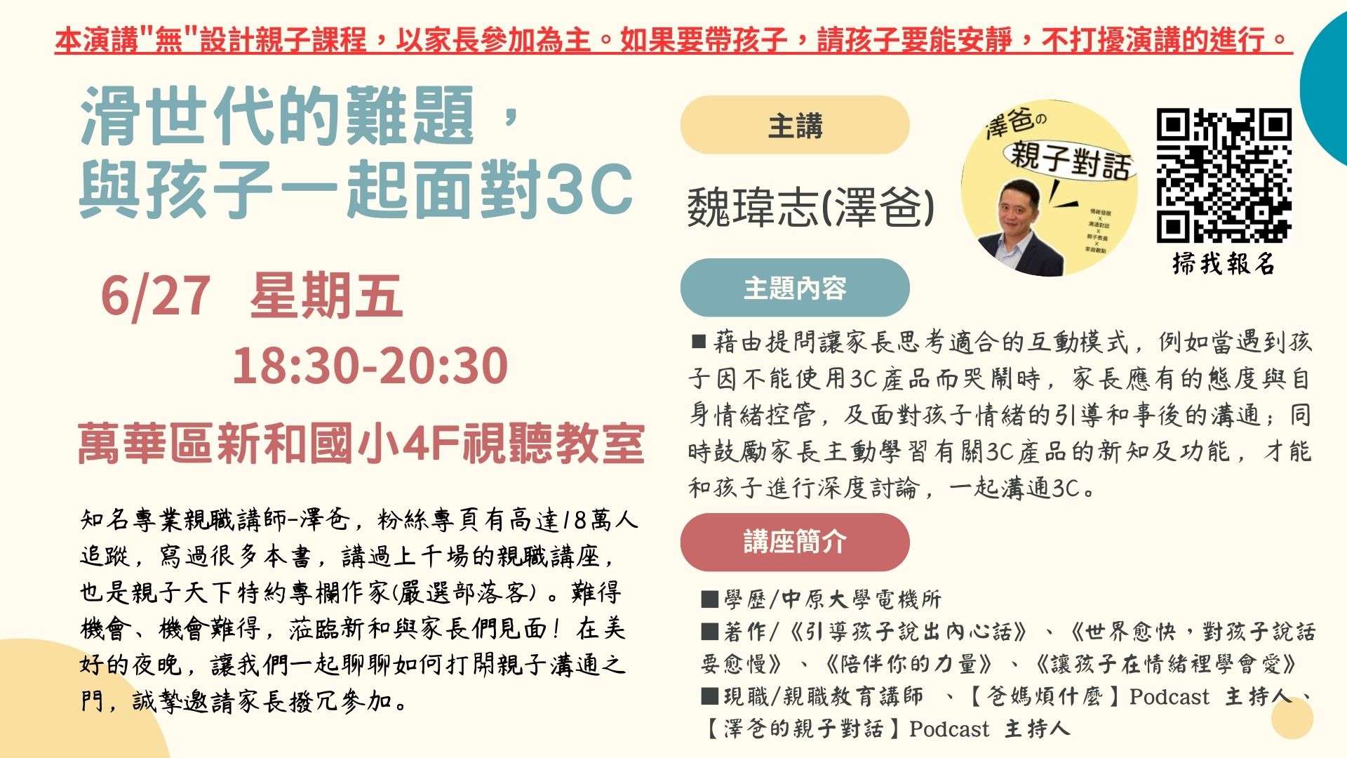 一、講座主題:滑世代的難題,與孩子一起面對3C