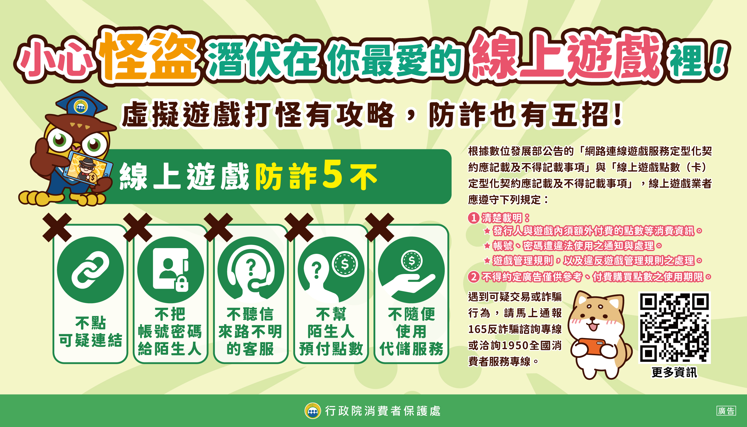 推動消費者保護 教育宣導推廣措施,擴展及傳達消費者保護知識,相關消費者保護 教育宣導素材,可至行政院消費者保護會網站 https://cpc.ey.gov.tw/ 參閱。